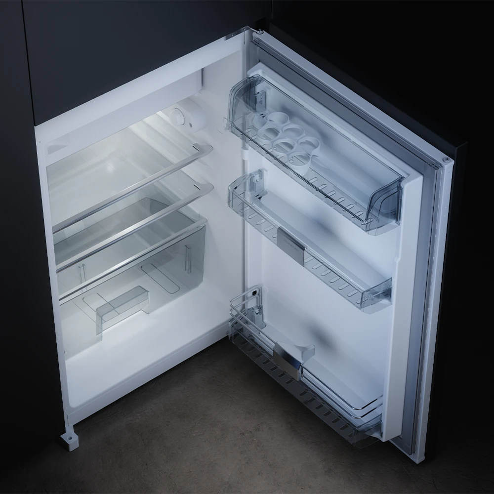 Küppersbusch soğutma cihazlarının iç tasarımı en iyi haliyle karşımıza çıkıyor. Kapı bölmeleri, krom çıtalarla birleştirilmiş krom kaplamalı, yüksek kaliteli plastikten yapılmıştır.