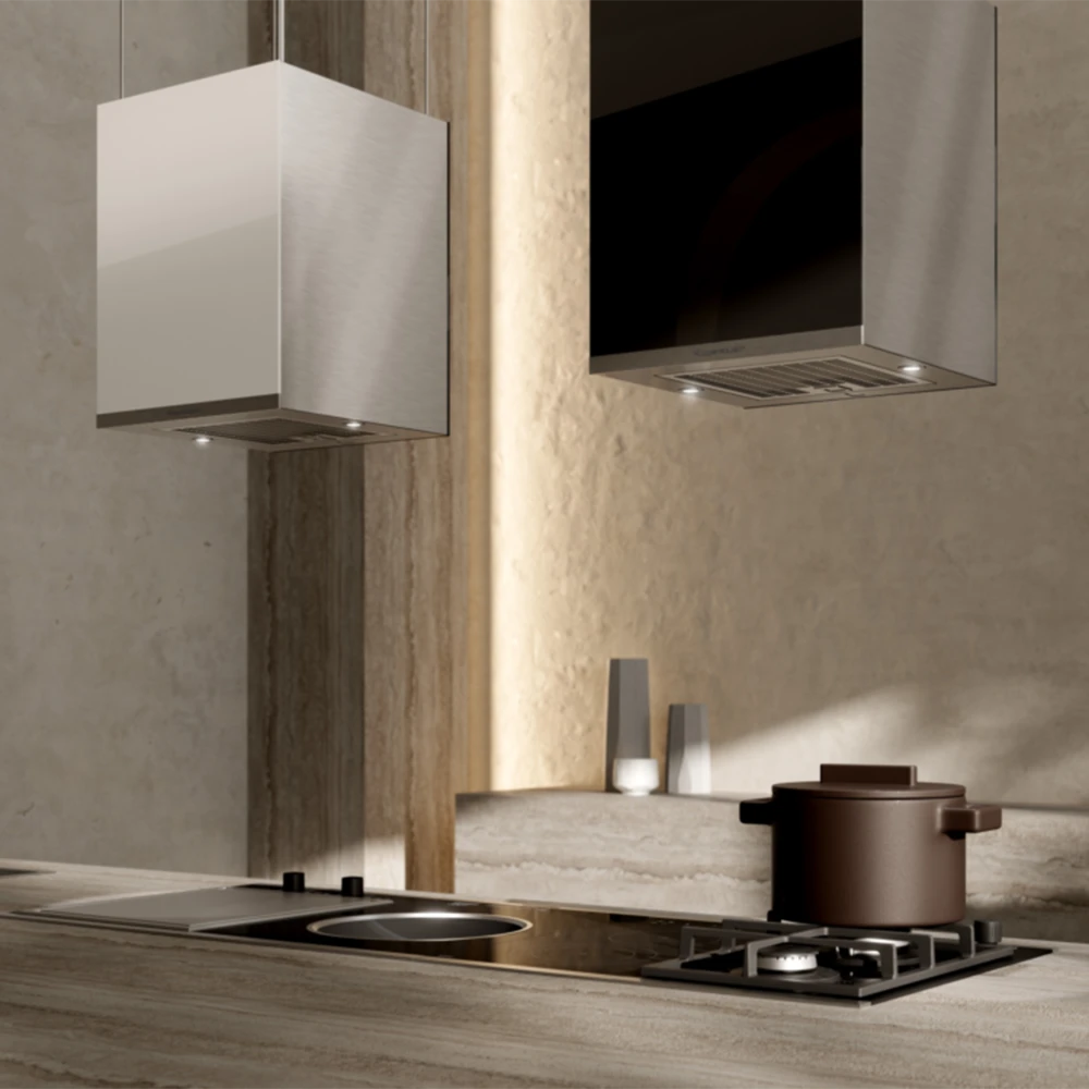 35cm küp tasarım ada davlumbaz uzaktan kumandalı